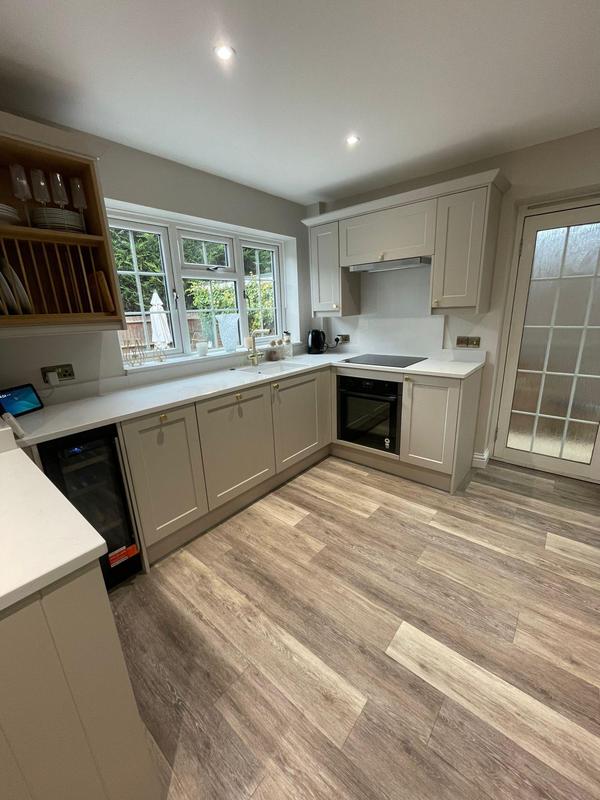 - New shaker style kitchen with marble effect slim worktops