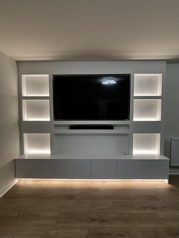 - Bespoke alcove unit with a large space for a TV