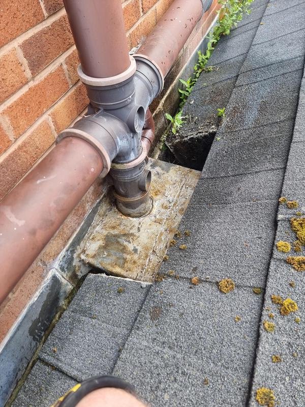 - Leaking soil pipe allowing water ingress into the conservatory.