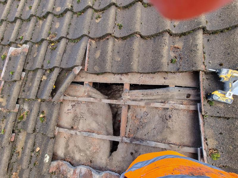- Wasp nest was located in the section of the roof damaged to the extent of water ingress.