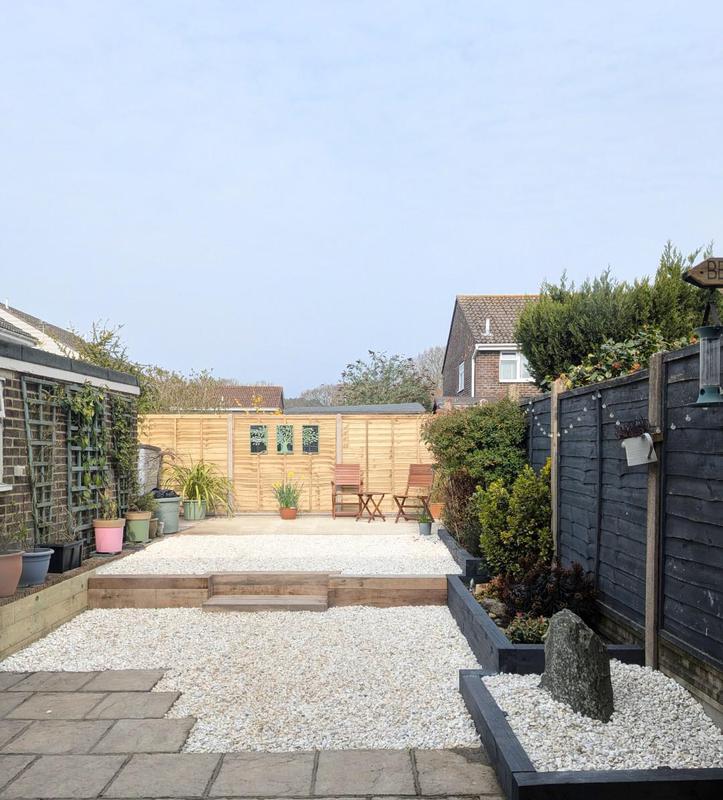 Frances Hearn - Image 1 "Elite have recently, totally transformed our embarrassment of a back garden, ravaged by moles, to a beautiful space we absolutely love! Dave and Ben worked extremely hard to remove large concrete posts, replace them and the back fence. They layed concrete across the back, to future proof any outdoor build we may want and gave us a lovely bright sitting space that's in the sun all day! They removed the grass slope, made it into two tiers, separated by hard oak sleepers, layed a sturdy meshing to stop the moles returning, an extra layer of scat then put some lovely Spanish Gold gravel down, which twinkles! They went above and beyond by spending time making the fence corners true again, getting rid of layers of fence, dug out unexpectedly large concrete posts. They tied in the oak sleepers with the wall by cladding it, which looks fab. They were prompt, tidy, fast workers who really worked very hard to way surpass what we hoped for! Very reasonably priced, cannot praise them enough! ⭐⭐⭐⭐"