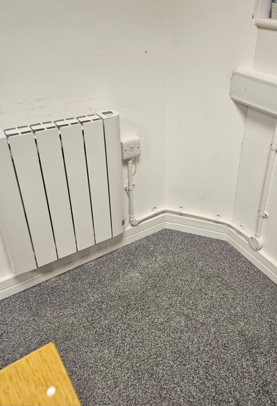 - New energy efficient radiant heater installation.