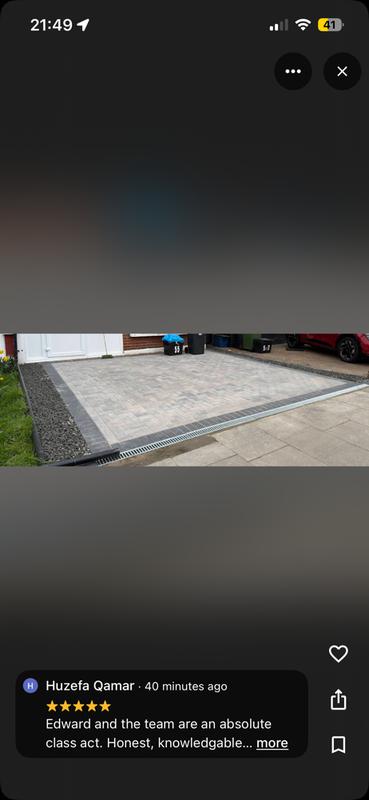 "Ed and his team done a excellent job of our driveway explained everything to us and very polite and friendly always on time and finished the job when he said."