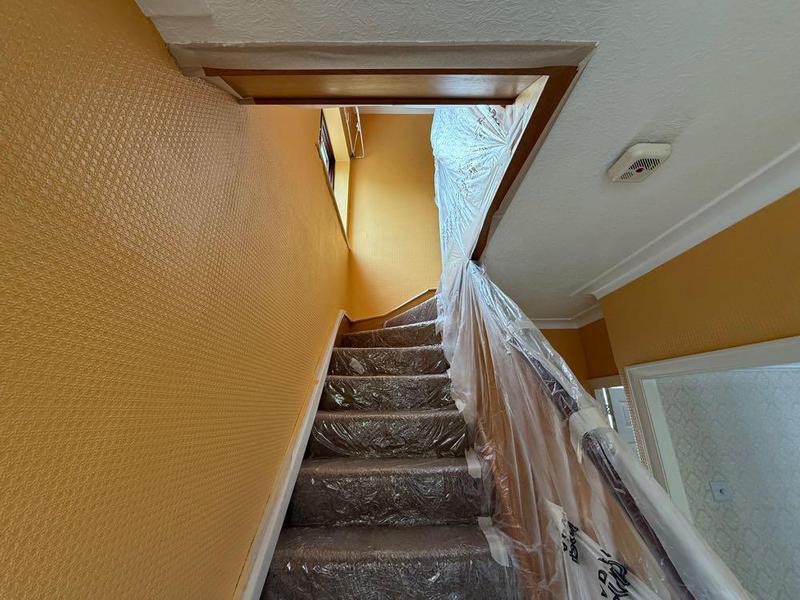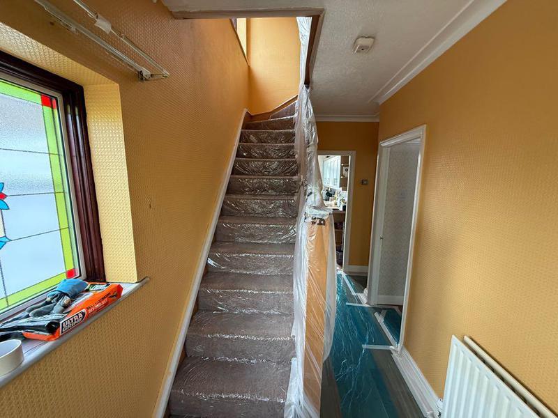 Six Bedroom House, remove wallpaper paint and hang wallpaper
