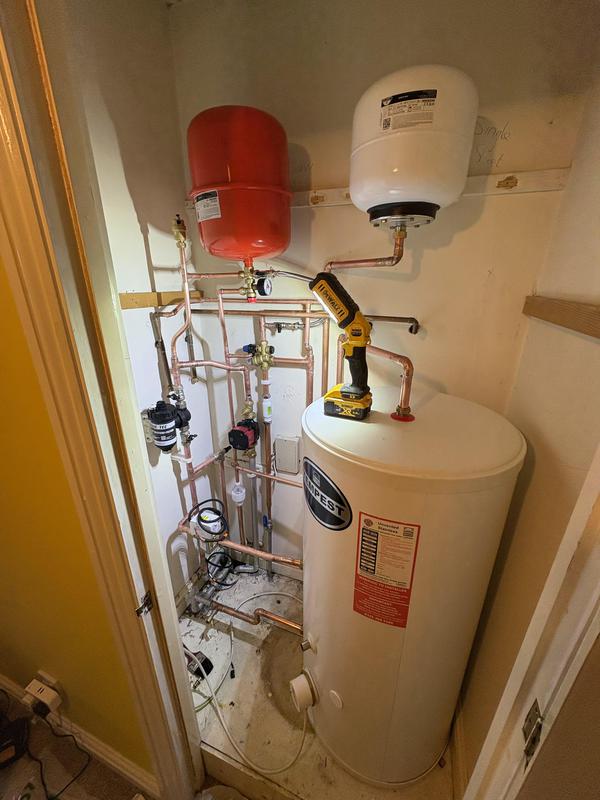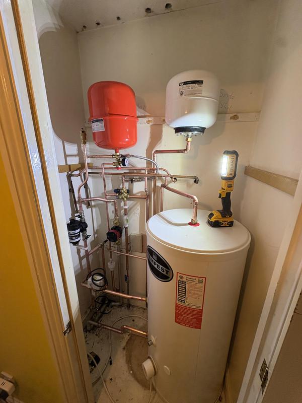 - Dave working on system boiler and unvented cylinder for builder In Woking
