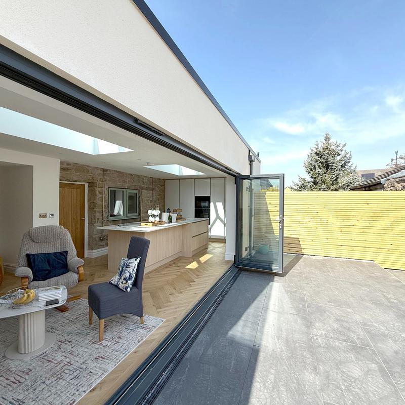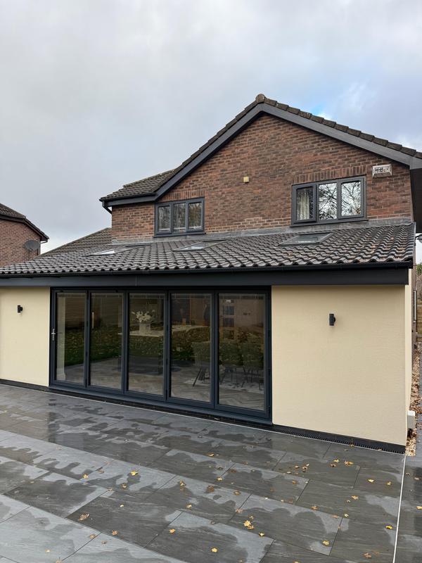 - Single storey extension with bi fold doors and lantern roof lights