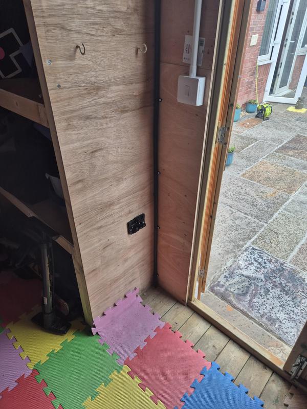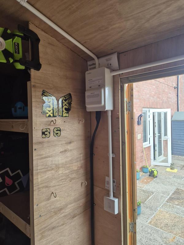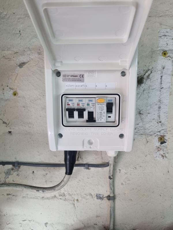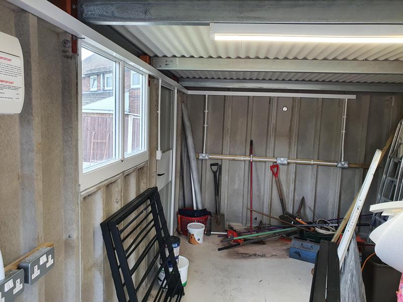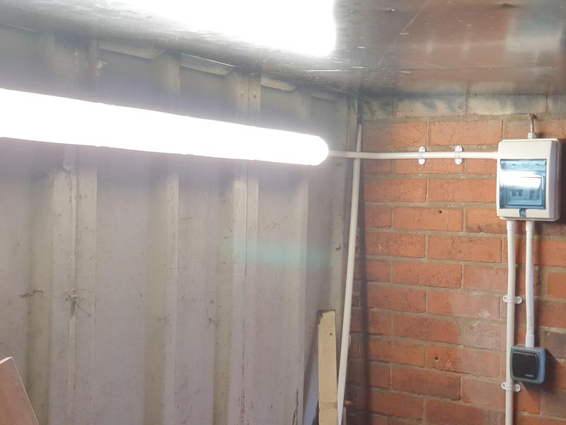 - Small garage consumer unit, light fitted on side wall as the roof was corrugated sheeting.