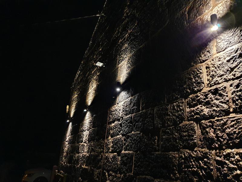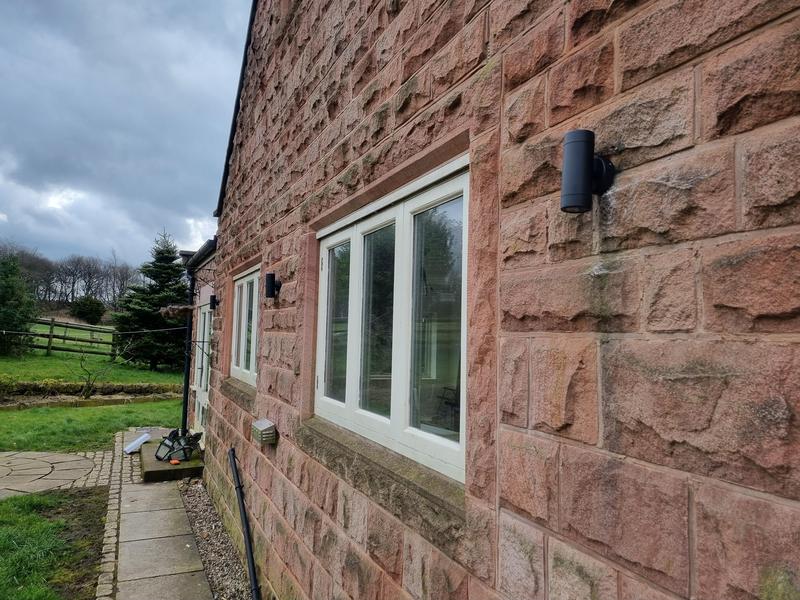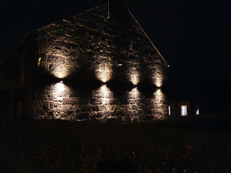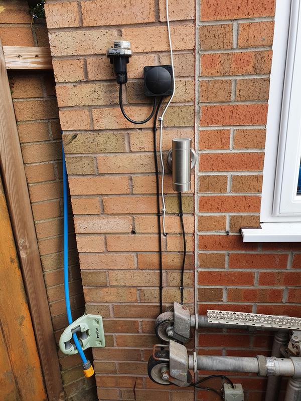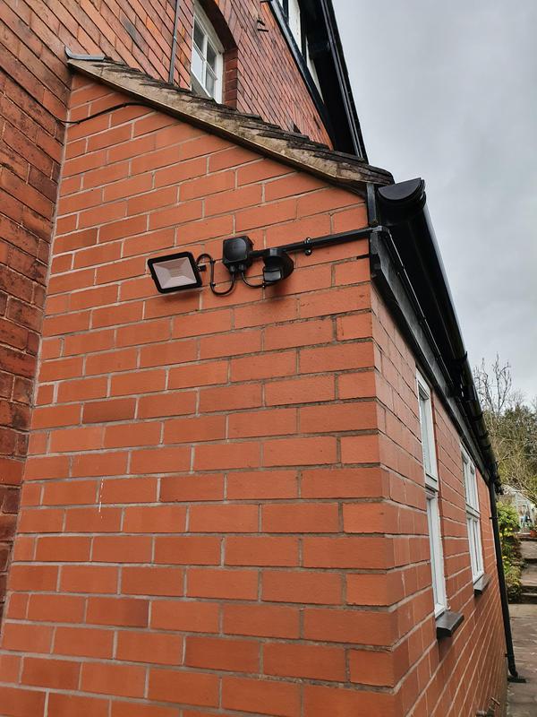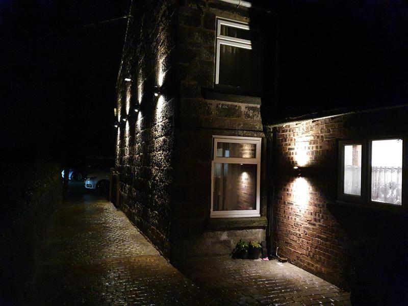 - Outside lighting installation of up and down lights from a switch inside and one security sensor light with a permanent supply.