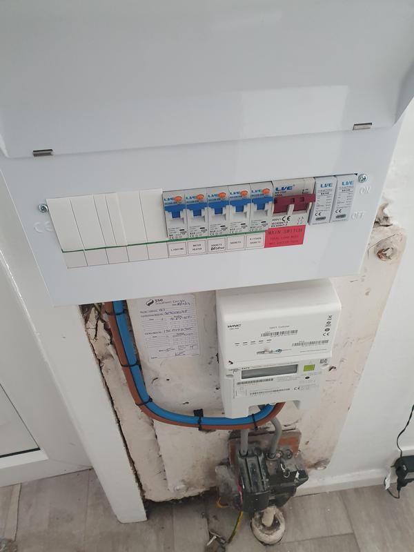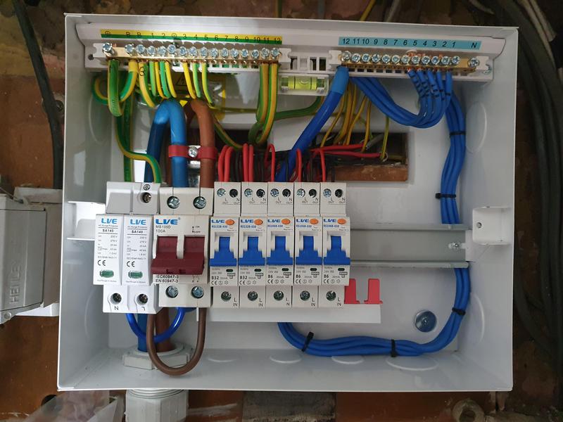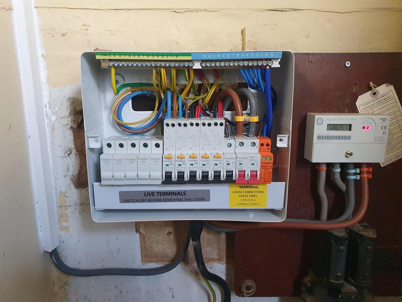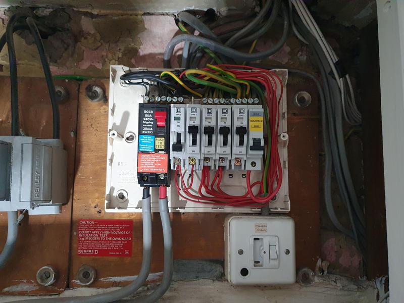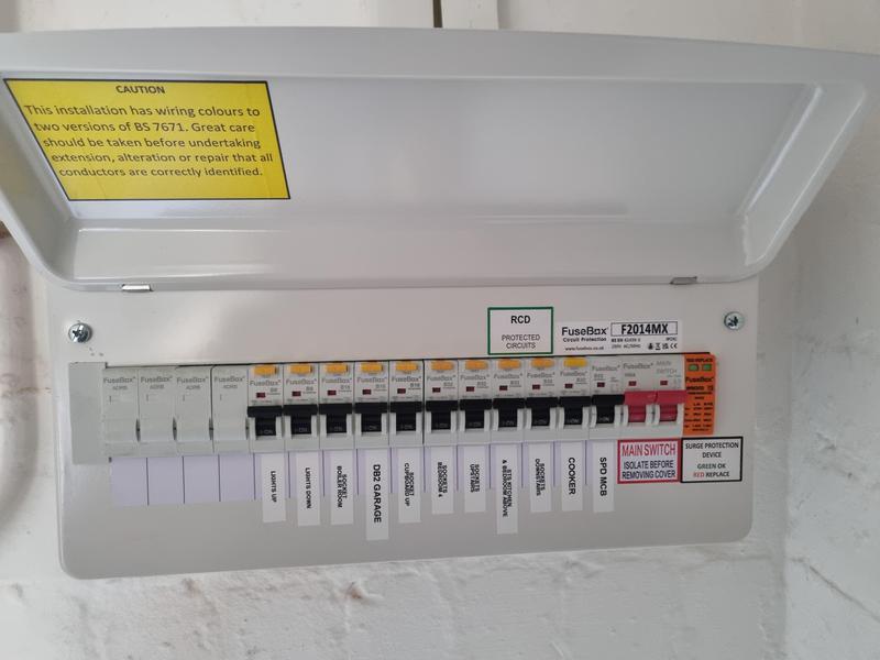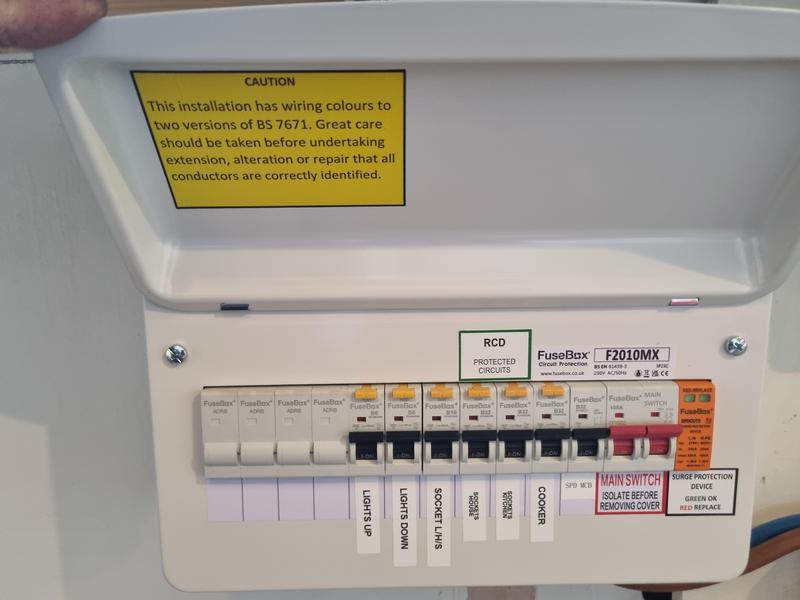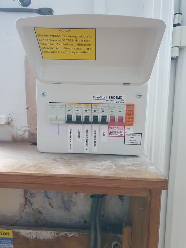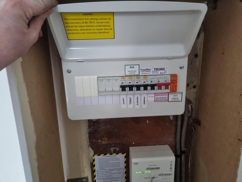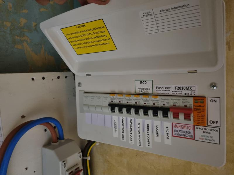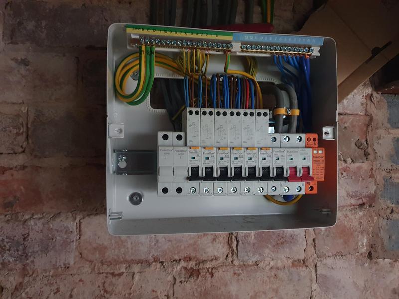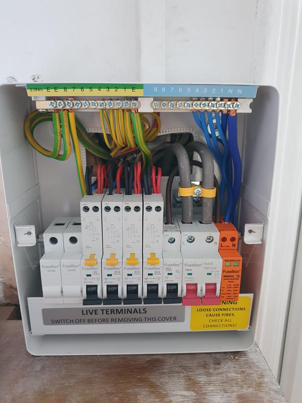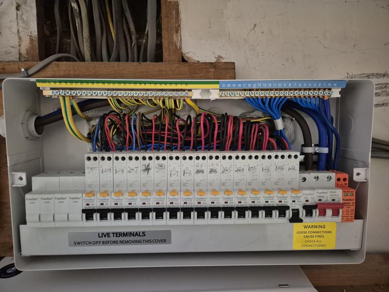 - Replacement fuse box as old one didn't have SPD or RCD protection for the lighting in bathrooms.