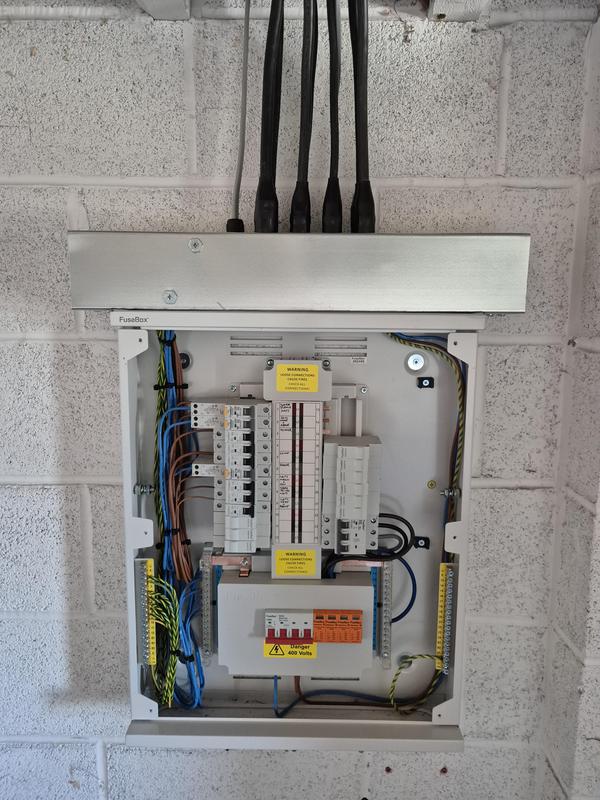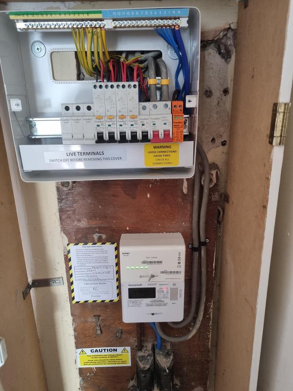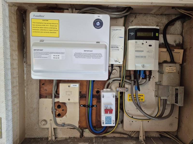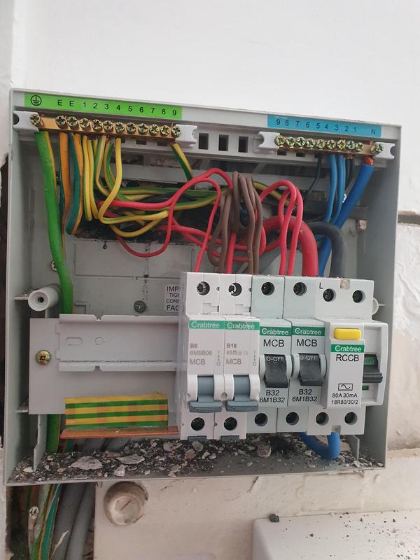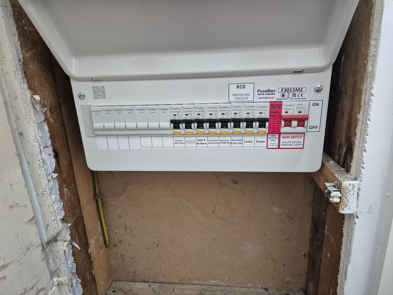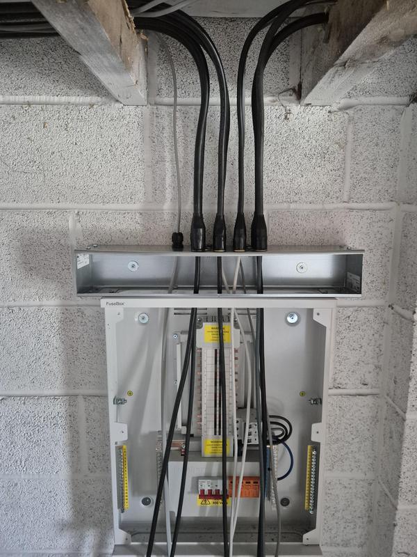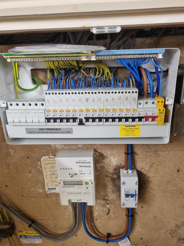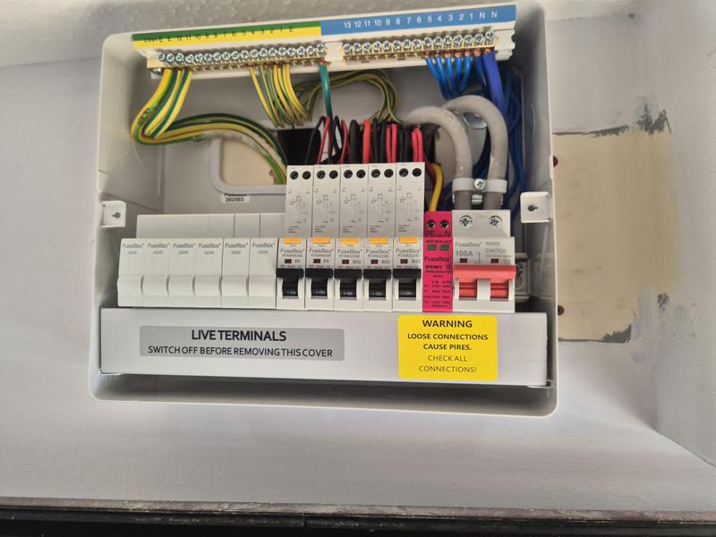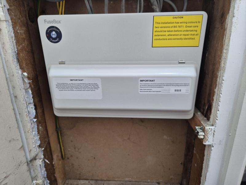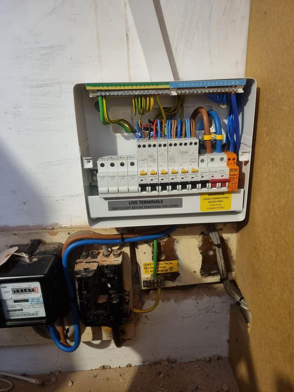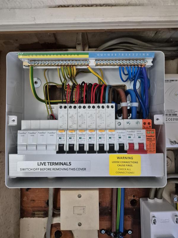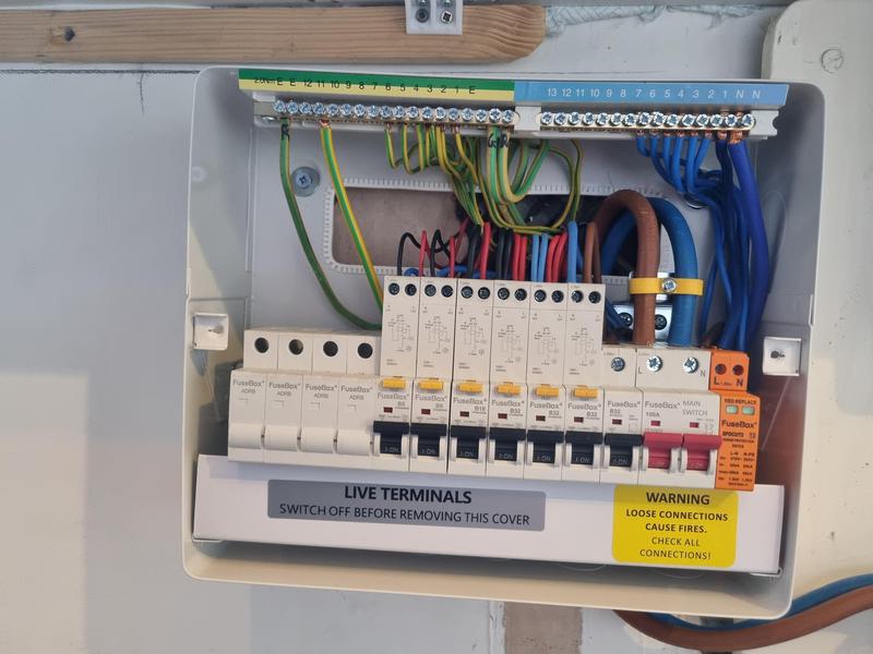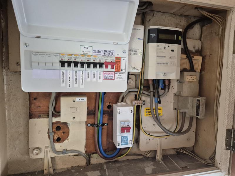 - Replacement fuse box as old one didn't have SPD or RCD protection for the lighting in bathrooms.