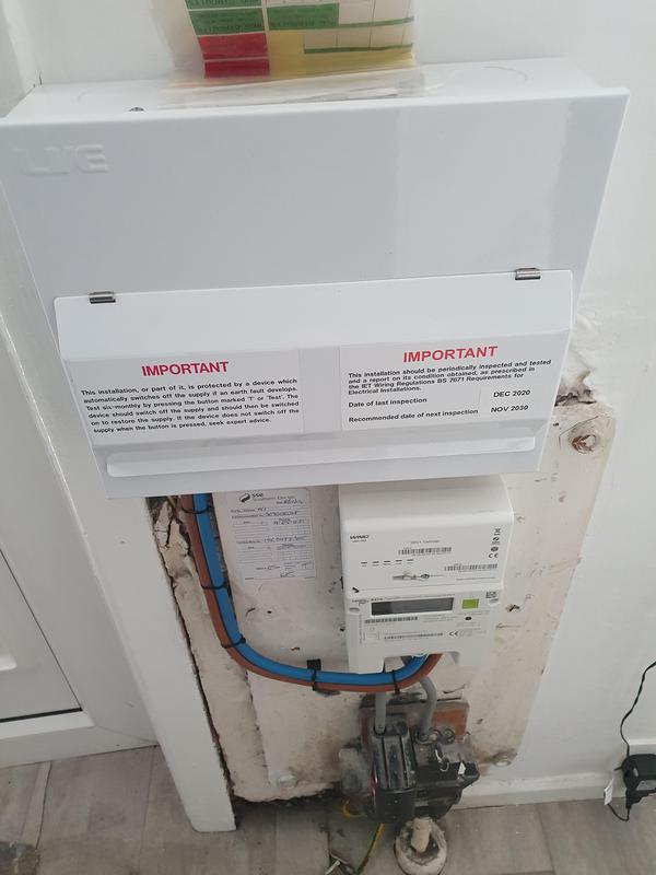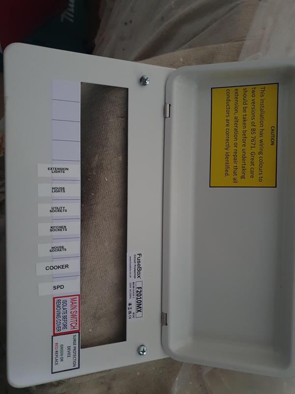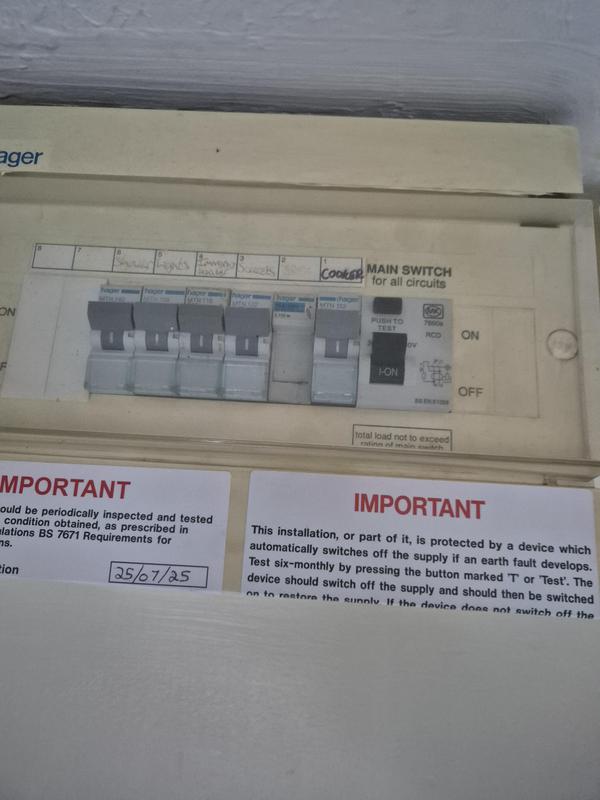 - Old consumer unit due to be replaced as main switch RCD failed test