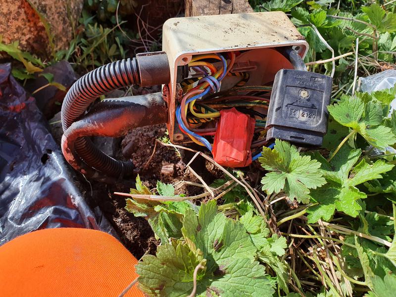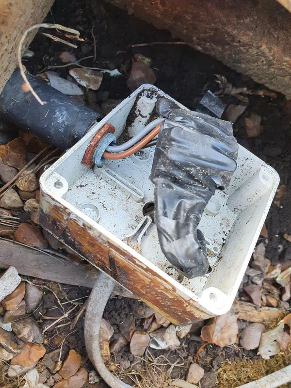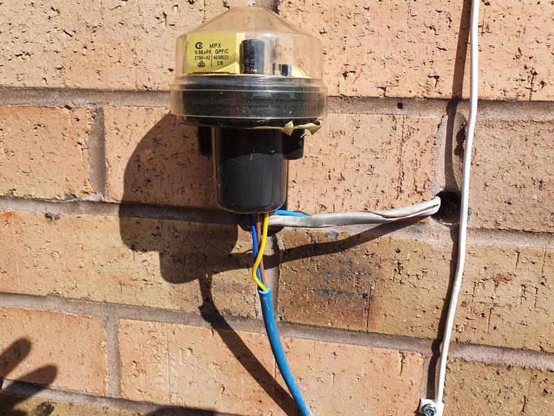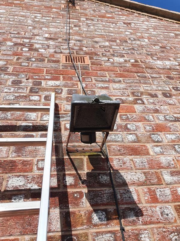 - Old halogen floodlight with no UV protection for twin and earth cable