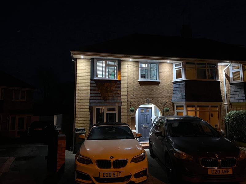 - Soffit down lighters install on a smart controlled switch all set up to clients mobile phone