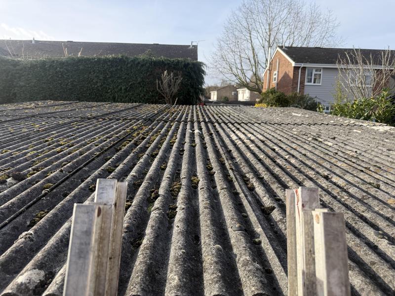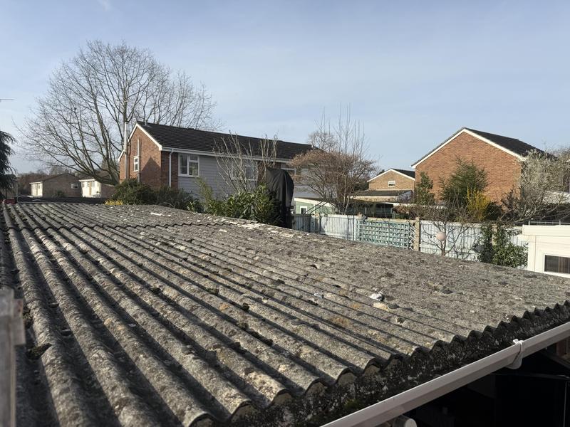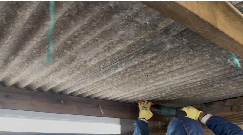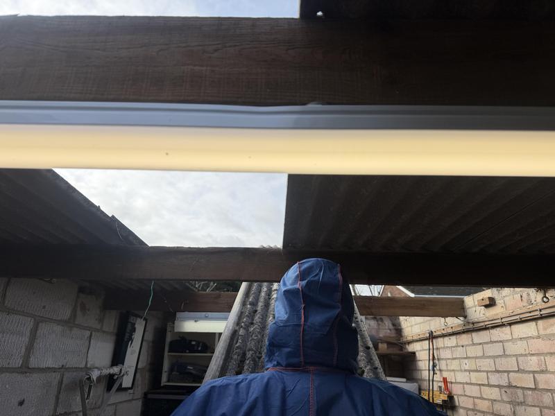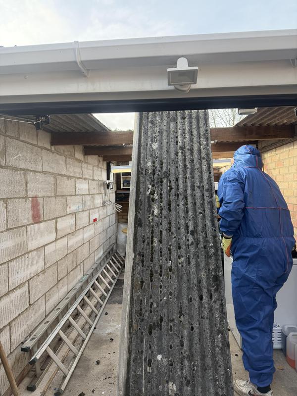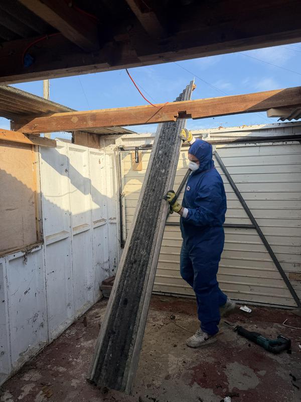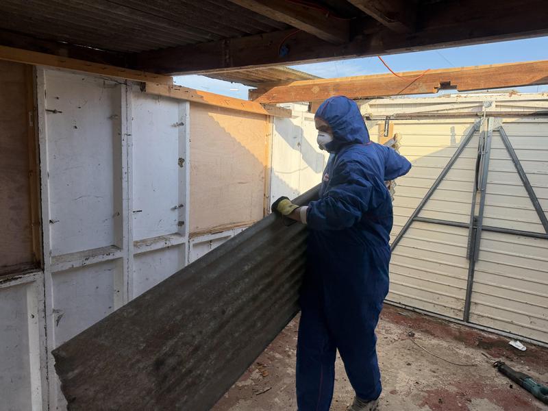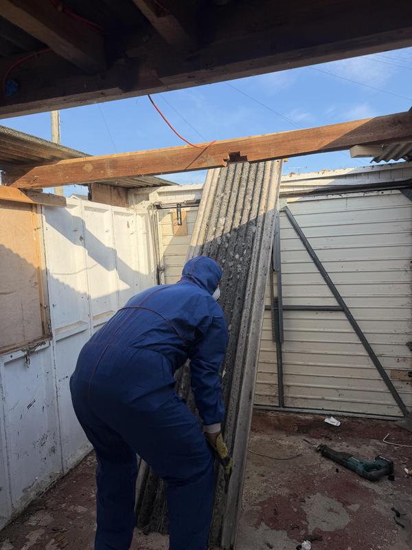 Asbestos roof being removed before we demolish a garage in Hornchurch