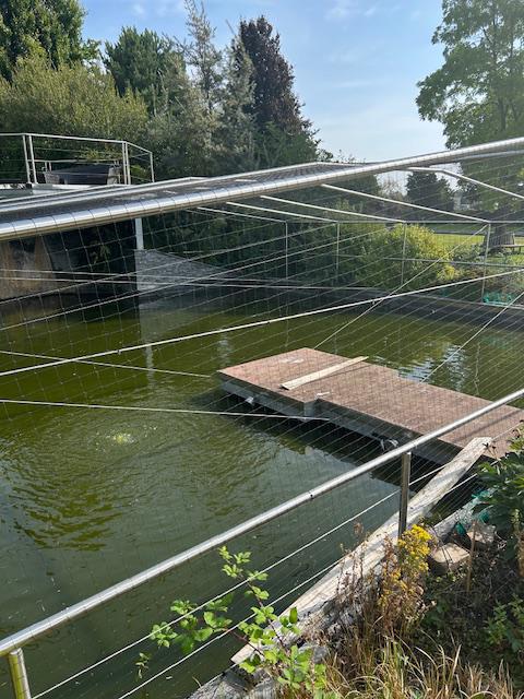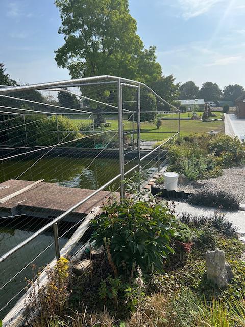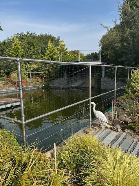 Install discreet netting to keep leaves out, reduce sludge build-up, and protect fish from predators.