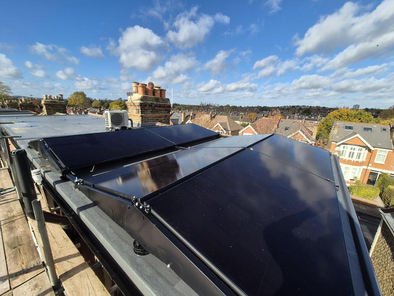 Alex Grove - Image 1 "I have been meaning to get solar panels installed for a few years, but the south-facing part of my house has a flat-roof from a loft conversion, which normally requires ballasted panels, adding lots of extra weight to the roof. Since I was replacing the roof, I had my roofer install mounting points to allow installation without the ballast, however after reaching out to various solar installers, many were reluctant to adapt to something different. After sending the technical specifications of the mounting points, Phil at G&E confirmed they could install onto the points. Phil was very responsive to all the questions I asked, and willing to adapt the installation to my needs. On the day of installation, the team completed the install neatly despite the pouring rain and wind, leaving everything clean and tidy. The following week G&E came back to fit a split air conditioner fitted which was also done to a high standard. Thanks again for everything, will definitely recommend to others!"