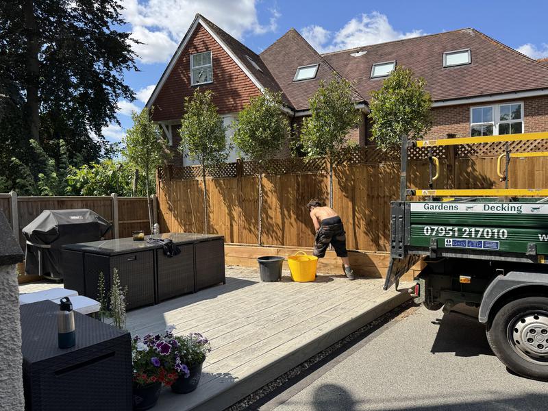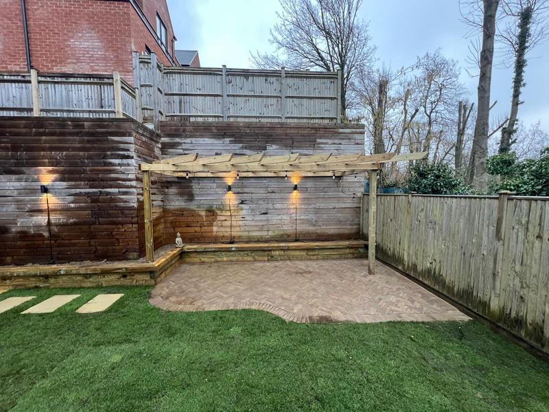 We offer a comprehensive range of landscaping and construction services, including bespoke fencing and decking, limestone and porcelain patios, ornate and retaining walls, front garden transformations, pergolas and arbours, turfing and planting, block paving, resin-bound drives and pathways, gravel paths, corten steel edging, and integrated water features. Our expertise also extends to millboard and composite decking, electrical garden installations such as lighting, electric and wooden gates, drainage solutions, tree surgery, digger and groundworks, and precision detailing throughout.