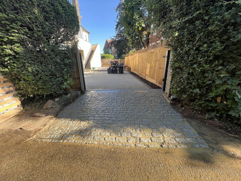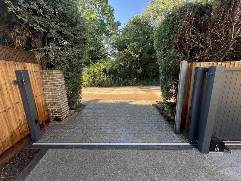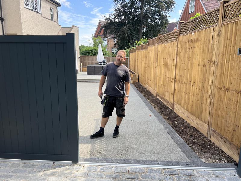- Reigate Resin bound driveway electric gate and millboard decking Rick Gabriella