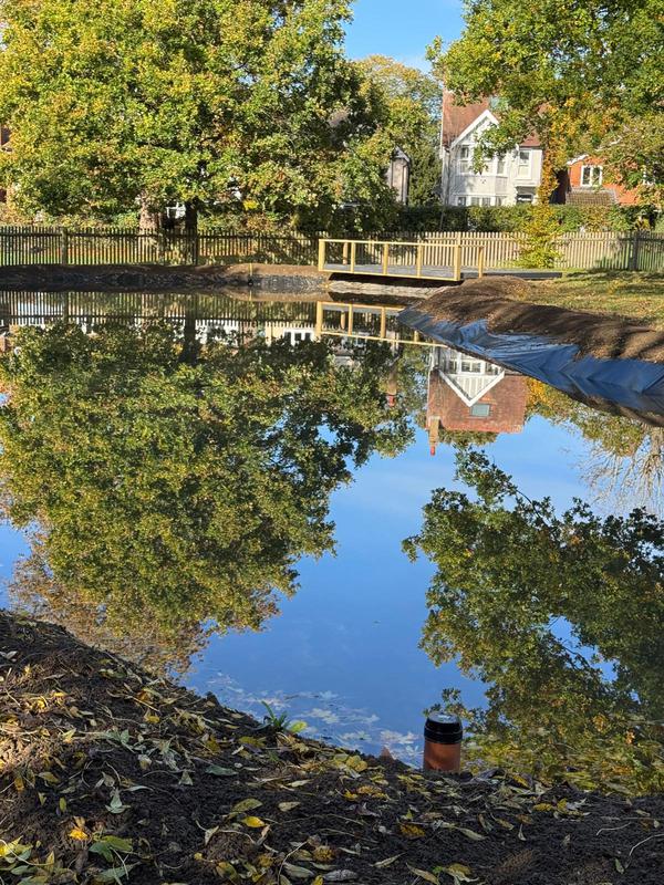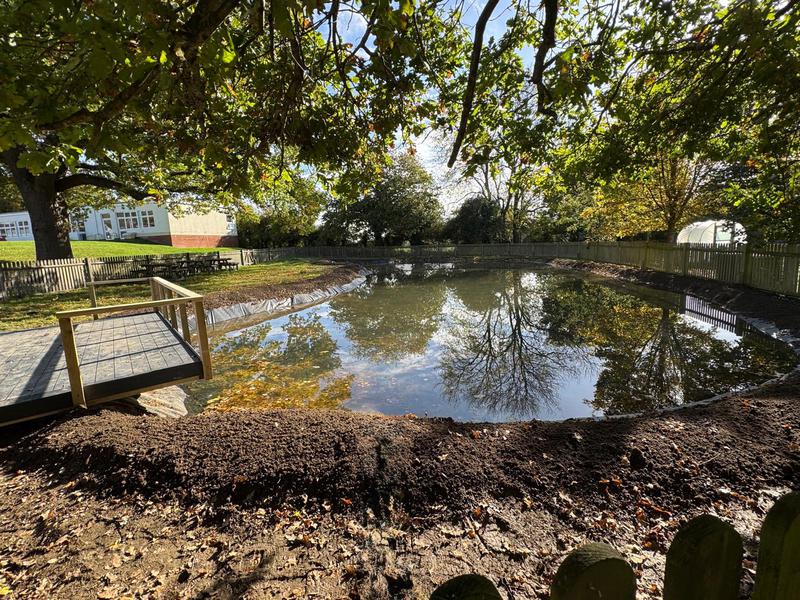 - Junior School Earlswood Very large pond redevelopment cantilevered decking composite AFTER