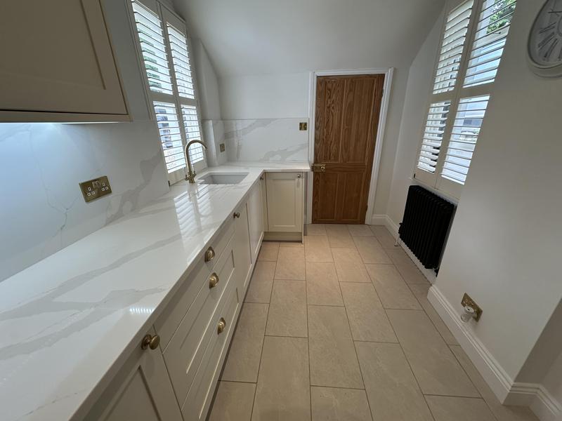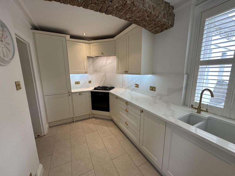- full kitchen refurbishment, floor tiling, splash backs, decoration, new skirting boards, lighting.