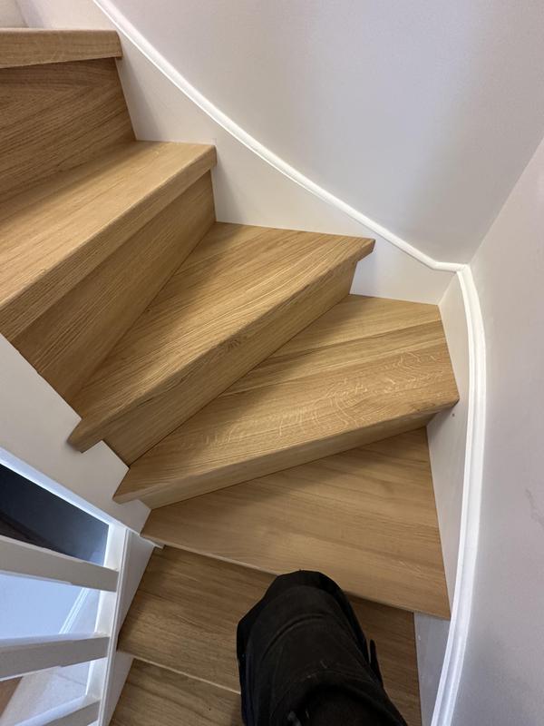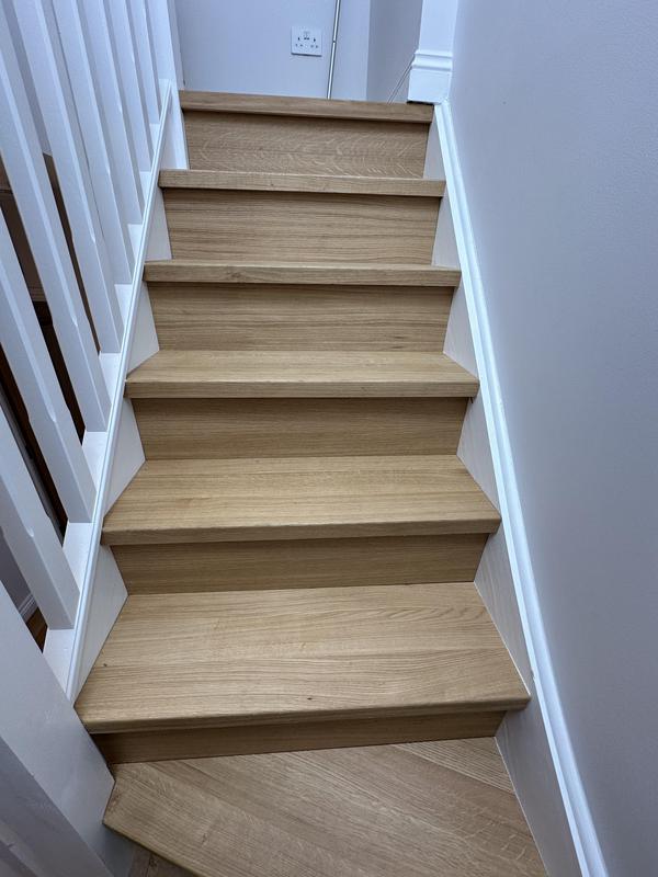 - Solid oak stair tread & riser cladding, ground floor to loft
