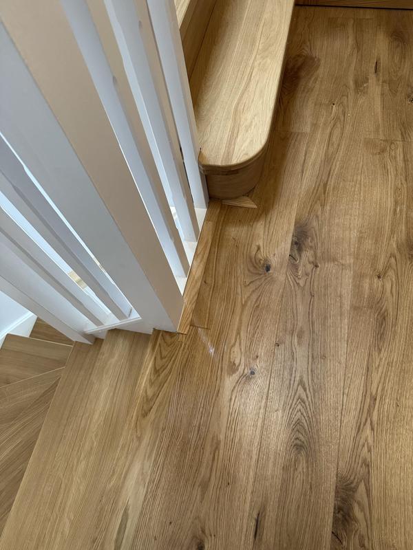 - solid oak stair tread & risers with seamless top step integration to existing oak flooring.