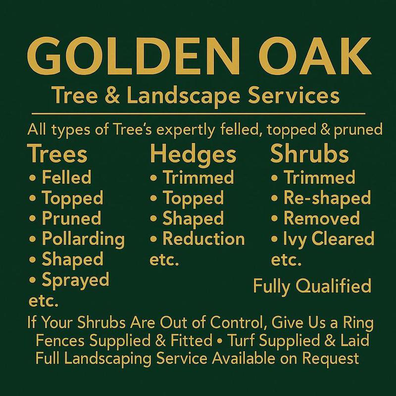 Here at Golden Oak Tree and landscaping services we are a family run company that pride ourselves in being a friendly reliable and trustworthy company.