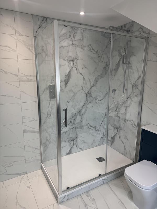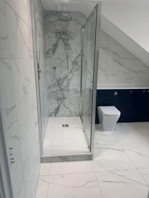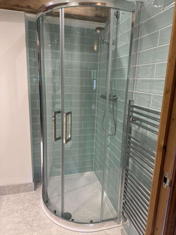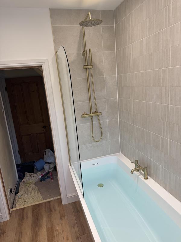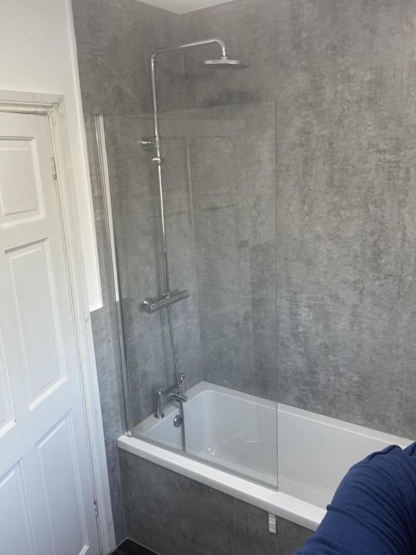 "(Unable to get an photo, due to small size of bathroom.) I am really delighted with this job, which was to remove the bath and associated attachments, and fit a lovely walk-in shower cubicle. Chris, Paul and Jake were absolutely fantastic. They were completely reliable; all worked very hard; made very little noise, and took only very short breaks. They kept me informed when necessary, cleared up as they went, and at the end of the job they swept and vacuumed, leaving everything clean and tidy. They also took away all the bath equipment they'd removed. Their workmanship was exemplary and I can't recommend them highly enough. Thank you all!"