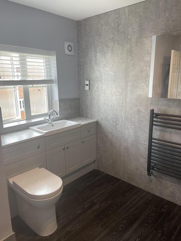 "Excellent service from Chris, Paul and Jake. Took out bath and replaced with walk in shower, vanity unit, we and laid new flooring. Such hard working, disciplined workers and cleaned up after each day. Would thoroughly recommend."