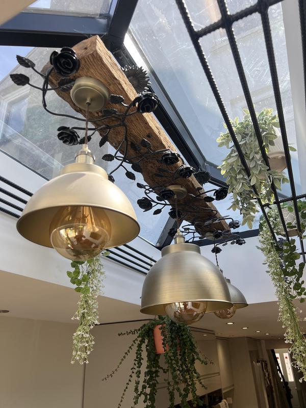 - Creating a bespoke lantern light feature made out of driftwood and hand crafted rose leaves with hanging lights .