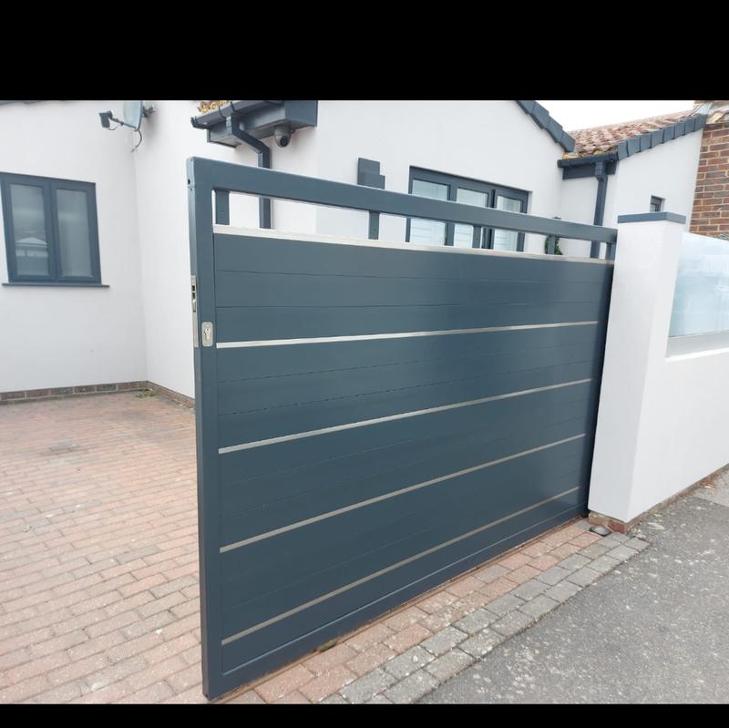 - Fabrication and installation of aluminium sliding gate in a woodgrain finish