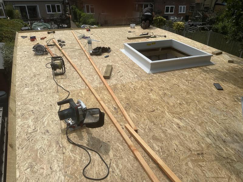 - Constructing a flat roof using firrings peaces for the correct fall ready for EDPM covering.