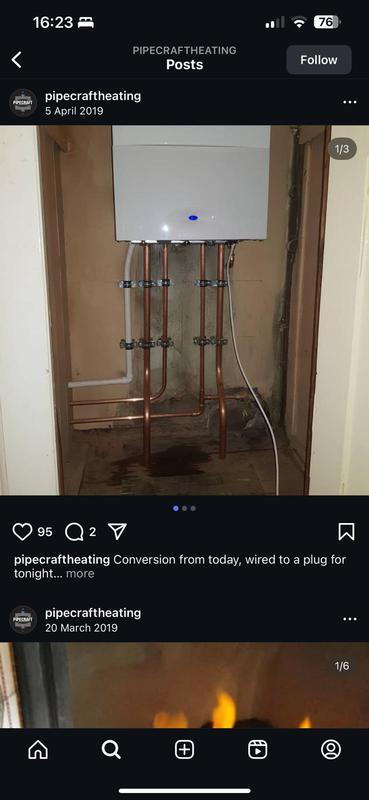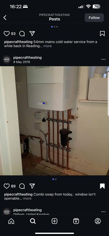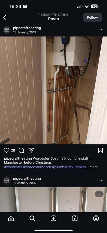 "Contacted these guys about a leak in my boiler. Mark came over same day to have a look, recommended a boiler replacement due to age and locationof the leak. Booked in a date which did have to be changed due to staff illness but this can't be helped and only had to wait a couple more days. The work was done to an amazing standard and within a days work! The lads who came to instal it were lovely and cleaned up any mess leftover. Communicating with this company was easy and stress free and the price for a new boiler was very reasonable. Very happy and would recommend these guys for boiler services!"