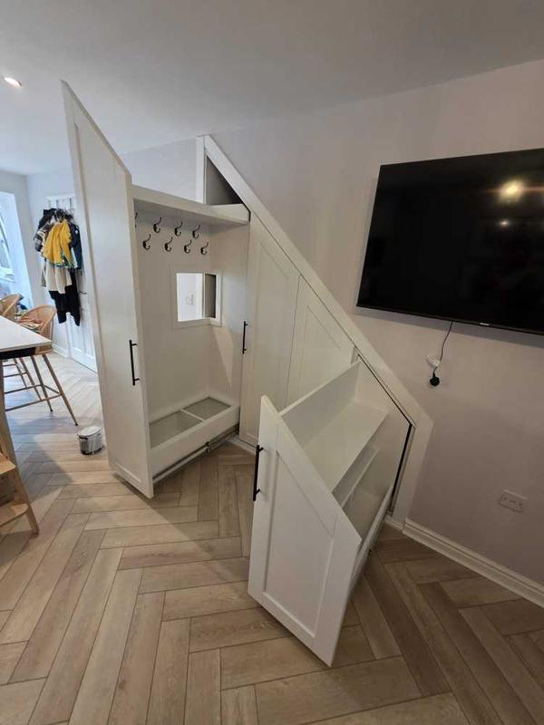 "Glen and his team came recommended by a friend and they were great. Came round multiple times to measure and discuss what we wanted for alcove storage. Friendly and accommodating to make changes, even after they’d drilled things to the walls, to make sure I was 100% happy. Very reasonably priced for high quality work, you can tell they have pride in their work and made sure we knew they were there if we had any problems or needed touchups in the future."