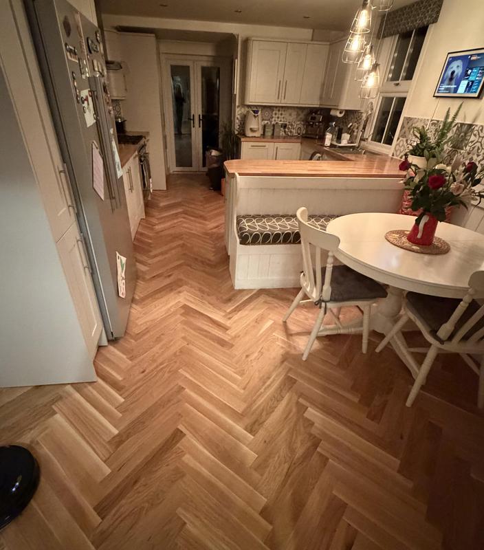 - Leveled and fitted herringbone flooring