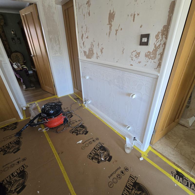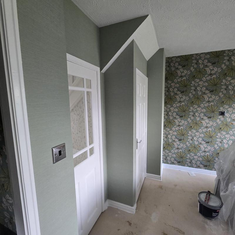 Michelle - Image 1 "It was great when Ian came to view the work at my house & Ian kindly said he would buy all paint I just needed to select colour & buy wallpaper, this was great as saved myself time & paint was factored into price. When Ian arrived first day he made sure everything was covered that needed to be and at end of each day made sure everything was moved out of my way ready for next day. Ian was punctual, polite and did a good job of wallpapering my Living room, stairs & landing then painted walls & all doors & woodwork. I had other quotes from other companies but their prices were nearly double of what Ian quoted so was extremely happy with price Ian charged for his work."
