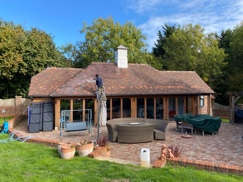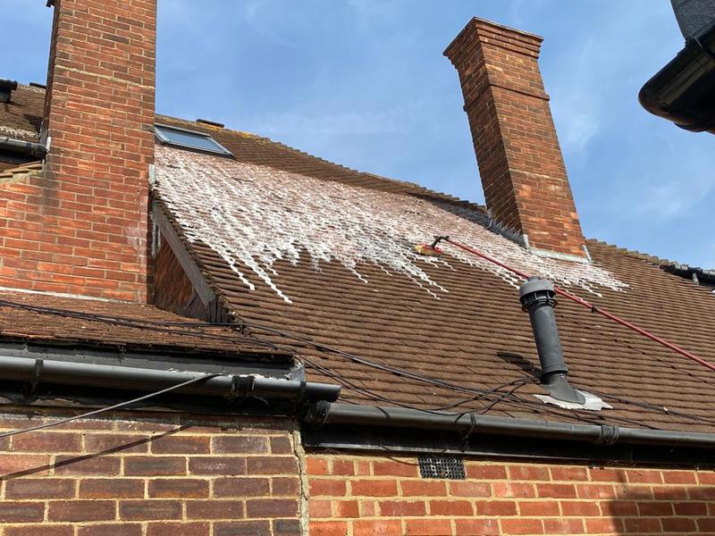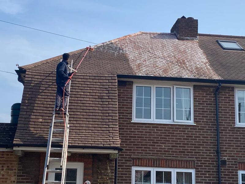 chemical based treatment to clean the roof (chemicals used will depend on surface and type of guttering installed).