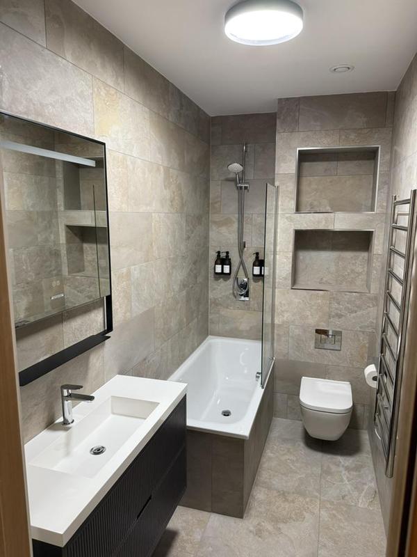Jordan Moore - Image 1 "Jason and his colleague Pedro recently completed a full bathroom renovation. I hired Jason a few years ago to replace my immersion heater - and the quality of his work inspired a lot of confidence. This carried through onto the bathroom renovation, where Jason prioritised doing the job properly above all else. He provided a fixed price quote, which he firmly respected. He really went above and beyond to make sure that everything went smoothly. The final result of the bathroom is incredible, including the tiling work. They kept my property impressively clean and protected. Very happy customer!"