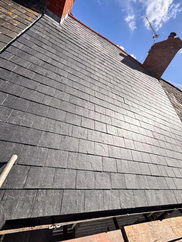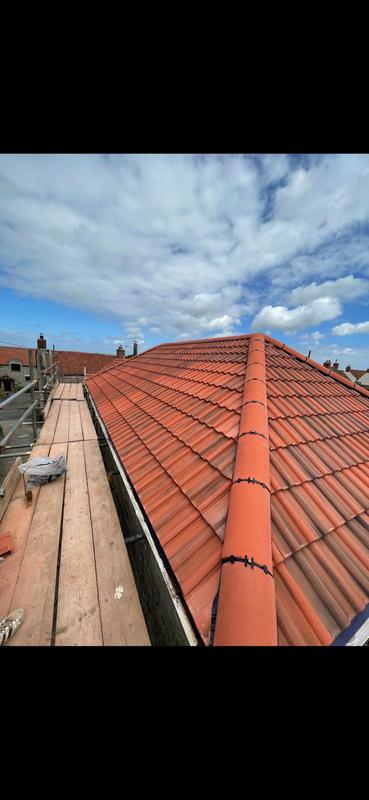 Mark - Image 1 "Difficult to take an image of the whole dry ridge which replaced a fried ridge that had reached the end of its life. The team responded very quickly following a fall of tiles and we were well advised before work started. The work was carried out efficiently and professionally with all rubble carefully and cleanly removed and carried away. The team were courteous and respectful and mindful of the wellbeing of pedestrians nearing the site, taking steps to prevent any possible injuries from falling debris. The pricing was competitive, the work was expedited to a high standard and we would wholeheartedly recommend Jimmy and his team. We will be certainly calling on them again as the need arises."