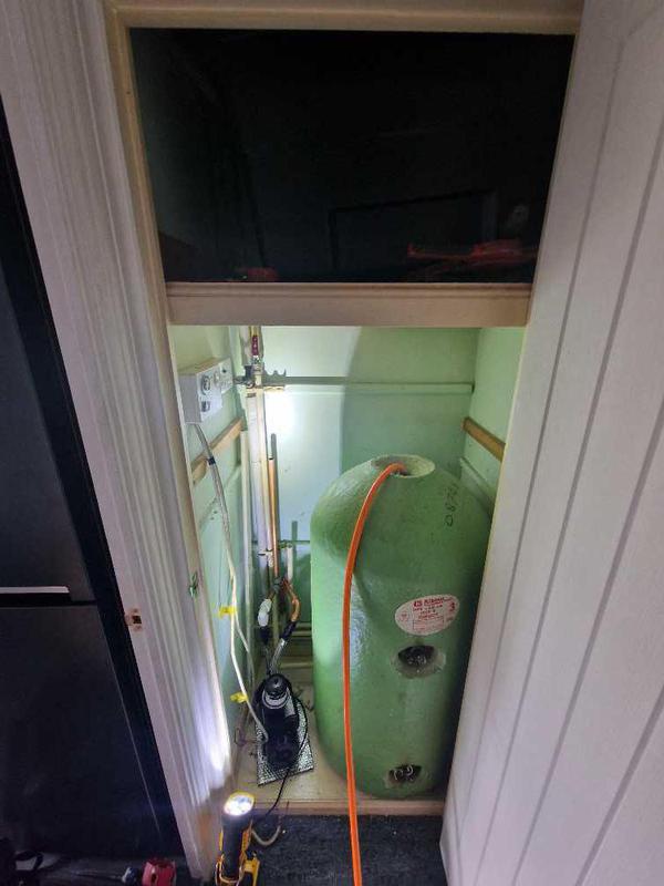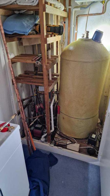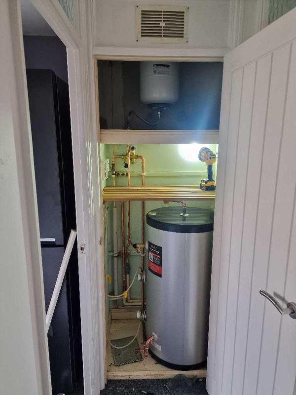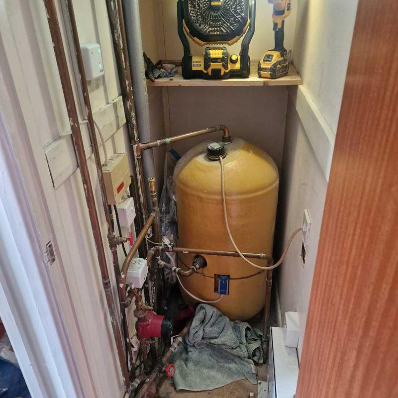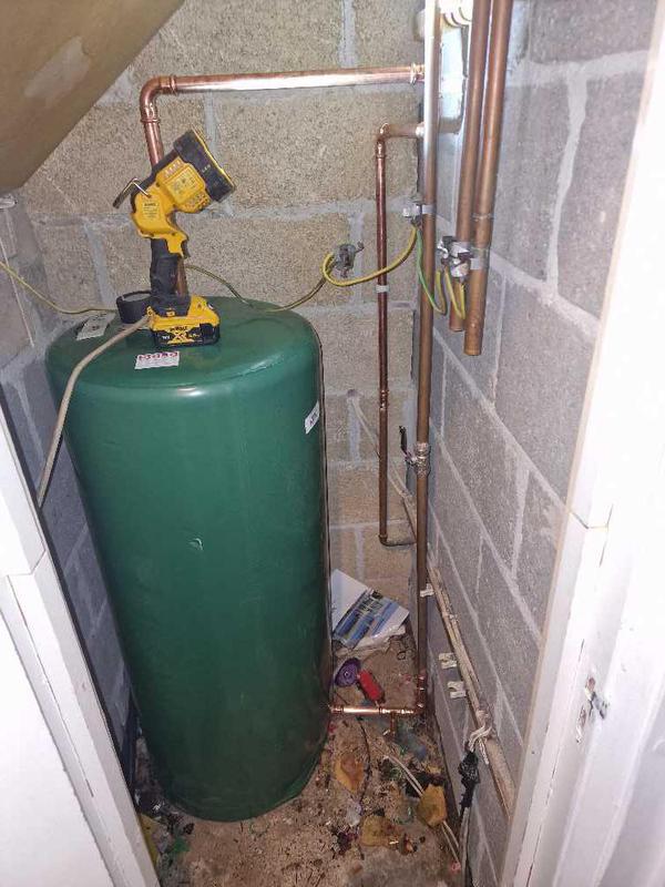 - the early stages of removing an old gravity fed hot water cylinder and installing a modern pressurised hotnwater cylinder