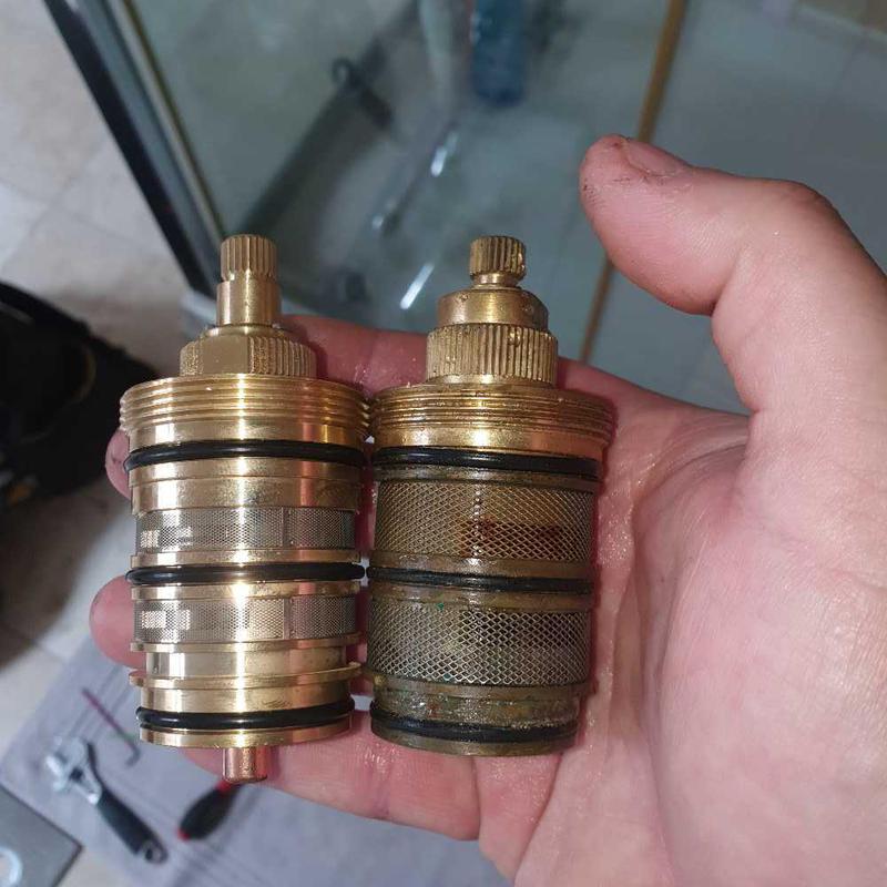 - swapping an old shower thermostat cartridge with a new one