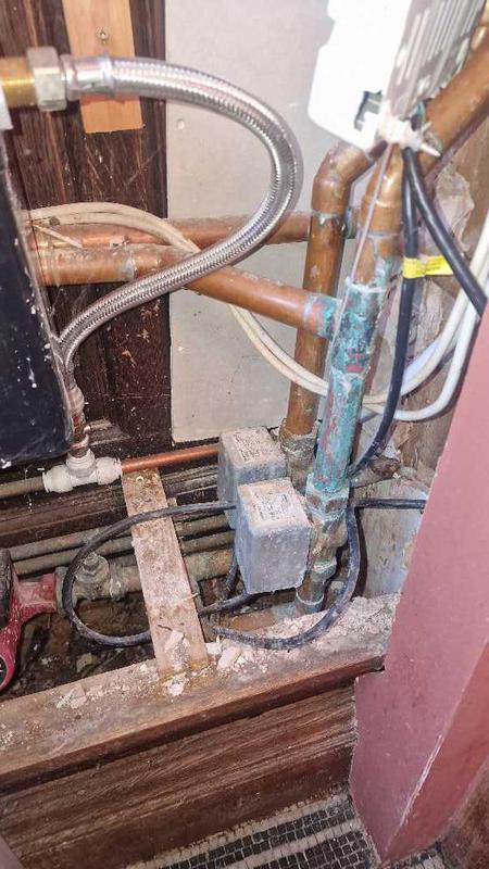 - due to a small leak and incorrect soldering, corrosion has wrecked these 2 zone valves and the surrounding pipework