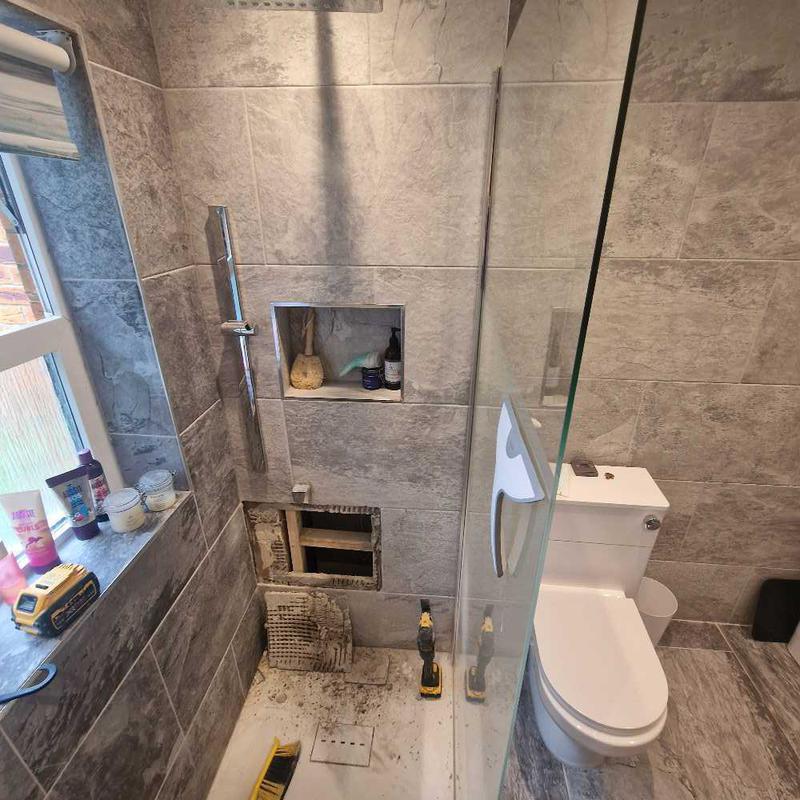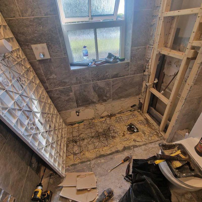 - after more tiles had come off the trail of poor workmanship continued till the very shower tray itself had to be removed due to the unstable base it was built on