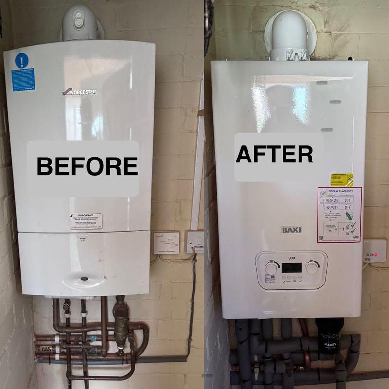 - Boiler Upgrade: Before & After! See the difference a new, efficient boiler makes! On the left, an older Worcester unit; on the right, a sleek, modern Baxi 800 Series installed. Upgrade your heating for better performance and reliability.
