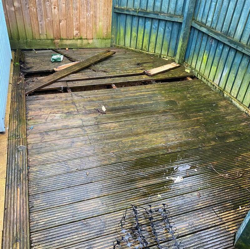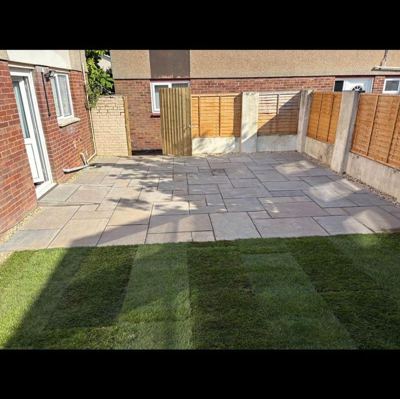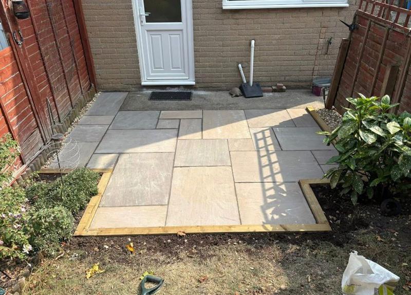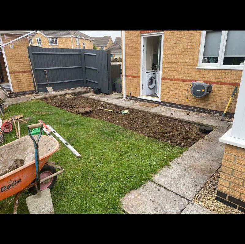 Philip - Image 1 "Removed old decking and some crazy paving replaced with slabs , good clean job with good amount of cement under the slabs for support"
