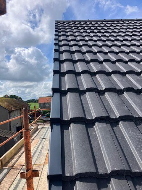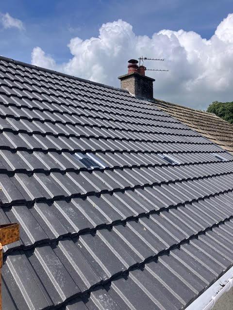 - New roof and dry ridge system with grey Redland Double Roman tiles
