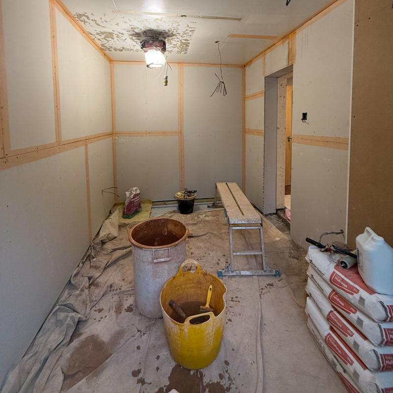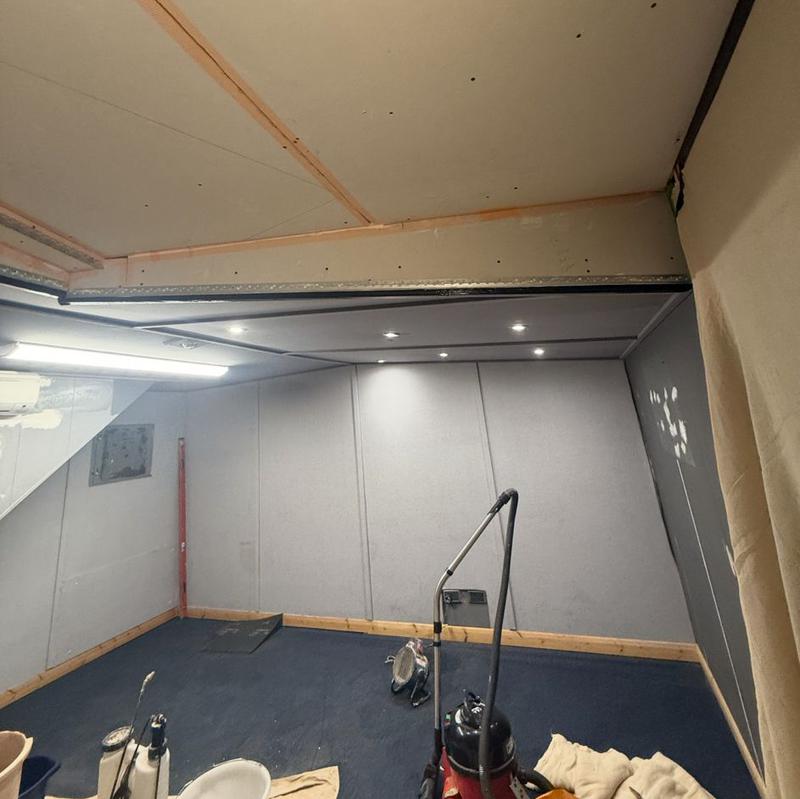 "The guys did exactly what it said on the tin, they worked like trojans and completed the work as forecasted. Starting with locating the ceiling joists, they then re-boarded the whole room, taped the joints and walls and completed a double skim all over. They provided an extremely competitive quote, I would definately recommend anyone to ask for a their proposed work to be to priced. Thank you Jedd for for transforming my downstairs living area."