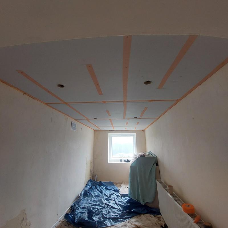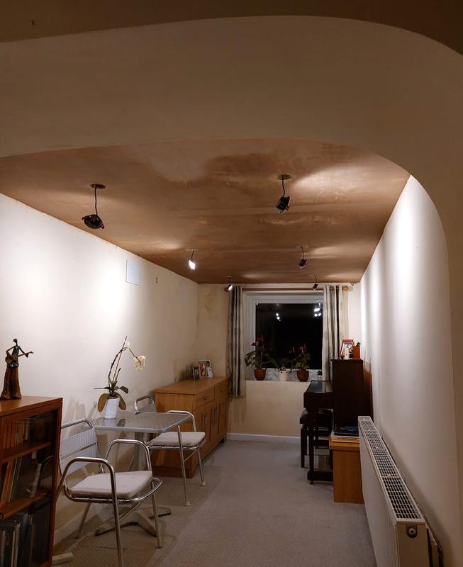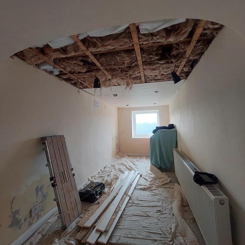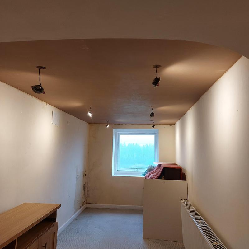 Ian - Image 1 "Waheed replaced a ceiling and downlights for us as shown in the photo. The old ceiling was tongued and grooved boards with little insulation above. The replacement included extra insulation in the cavity and thermal plasterboard for the celing, this was skimmed when complete. Our room is now warmer. We believe he has also identified and remedied a leakage issue, which was due to an problem with the roof not taking the water into the guttering. We are very please with the result, Waheed and his helper completed the work very professionally, and in a very clean manner."