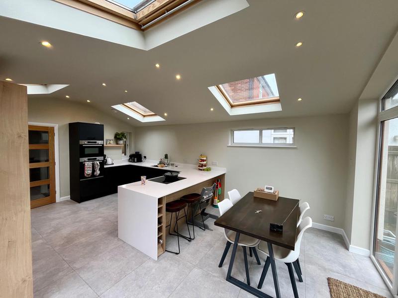 - Ceiling plastered with skylight reveals