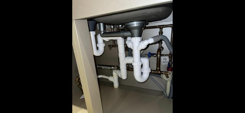 - New composite black sink installed, with new franke tap to replace stainless steel bowl and rose gold tap. All wastes and water supplies altered to suit underneath.